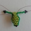 A félbehajtott rézdrótra tegyél 1 db zöld gyöngyöt ( a lábakig csak a sötétzöld gyönggyel dolgozunk)!